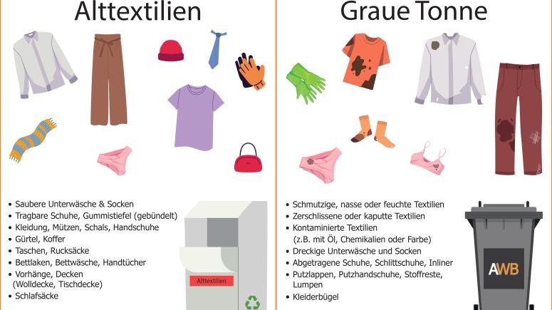 Alttextilien und Altschuhe sind viel zu schade für den Restmüll- durch richtige Entsorgung können wertvolle Rohstoffe wiederverwendet werden.